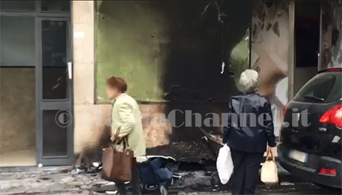 Il denso fumo nero che si è sviluppato ha annerito le pareti dell'edificio fino al secondo piano. Piccoli danni ha subito un'auto che era parcheggiato a pochi metri dal punto in cui è stato appiccato il fuoco.
