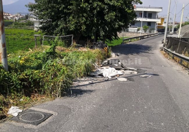 Rifiuti abbandonati in via vecchia Fontanelle, e precisamente nei pressi del cavalcavia della statale sorrentina. Scarti di lavori edili, strisce di catrame e materiale indifferenziato vario. E’ questo quanto abbandonato da giorni da alcuni incivili nella strada che collega via Pozzillo con via Fontanelle. Ma non è tutto. Proprio sul cavalcavia sono stati lasciati a terra diversi sacchi neri da cui si sprigiona una terribile puzza. Il sospetto è possano contenere animali morti. Le segnalazioni sono state fatte dai residenti della zona, ma al momento tutto rimane così come descritto.