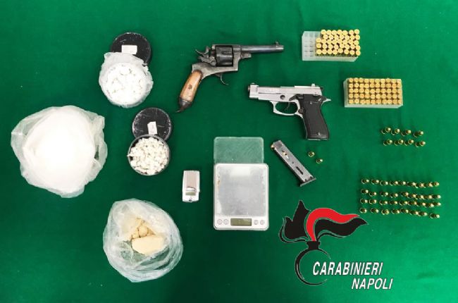 I carabinieri della stazione di Castellammare di Stabia hanno sequestrato, nel rione “Moscarella”, una pistola semiautomatica e un revolver con matricola abrasa, 99 cartucce per semiautomatica e 28 per revolver oltre a 120 grammi circa di cocaina divisa in 200 dosi, 2 etti di mannite per il “taglio” dello stupefacente e 2 bilancini di precisione.