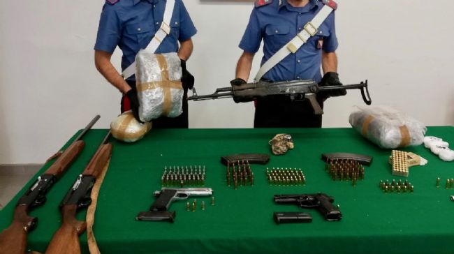 Sequestrate anche 224 cartucce per armi da guerra, semiautomatiche e revolver ma anche 5,3 chili di marijuana, 4 pietre di cocainapura del peso complessivo di 235 grammi e un bilancino di precisione.