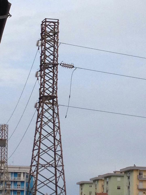 Il traliccio che da anni sta facendo discutere i residenti oggi è stato oggetto di un incidente per fortuna senza gravi conseguenze.