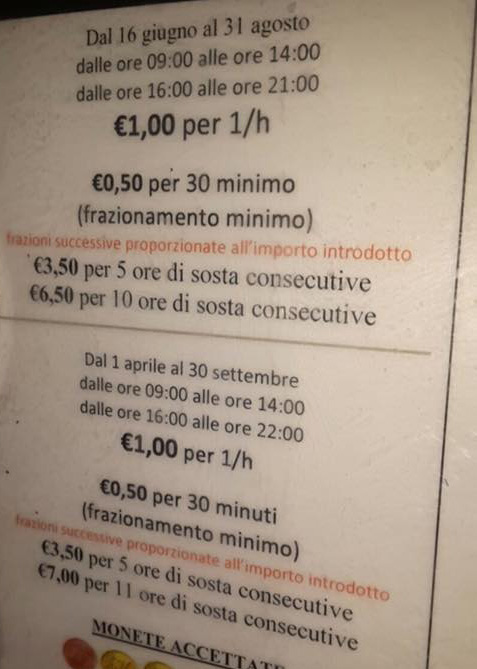 Le colonnine che erogano i tagliandi recano indicazioni differenti rispetto alla segnaletica verticale.