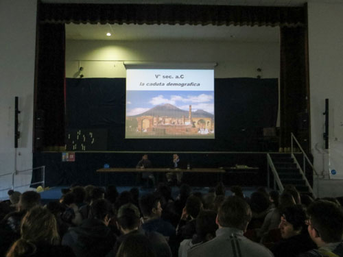 Il primo incontro si è svolto mercoledì 11 febbraio e la lezione è stata incentrata sulla nascita dell'antica città romana, della sua evoluzione nel tempo e della sua distruzione. Le tracce archeologiche e le scoperte dal ‘700 ad oggi hanno stimolato molto gli studenti che si sono intrattenuti con oltre 30 minuti di domande.