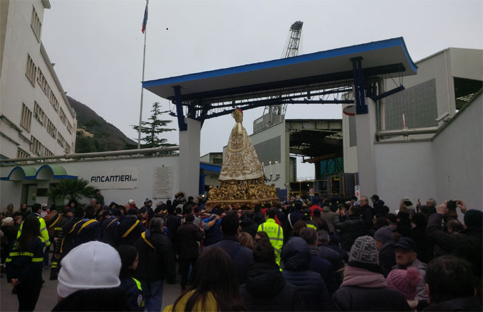 "Il lavoro deve essere per tutti, giovani e adulti, nessuno deve essere escluso da questo cammino". Questo è il monito del vescovo Franco Alfano lanciato dal piccolo palco allestito all'interno dello stabilimento Fincantieri di via Duilio dove questa mattina ha fatto tappa, come da tradizione, la statua di San Catello. Non è la prima volta che il vescovo si esprime su questo argomento, spesso appellandosi agli amministratori locali e delle aziende stabiesi. Difficile sorvolare sull'emergenza lavoro davanti a centinaia di fedeli stabiesi. Ormai le vertenze e le crisi aziendali sono diventate endemiche in città, partendo dalla Fincantieri per passare a Terme di Stabia, Avis Stabia Porto. Alle tante vertenze nelle ultime settimane se n'è aggiunta un'altra, l'ennesima che colpisce uno dei simboli della nostra città: l'imbottigliamento dell'acqua Acetosella. I dipendenti sono in attesa di mensilità arretrate e alle prese con una crisi della loro azienda che sempre pronta a cedere il passo ed a vendere l'attività. Tanti sono i padri di famiglia a Castellammare rimasti senza lavoro dall'oggi al domani, al pari dei tanti giovani che preferiscono lasciare la città per emigrare verso il Nord Italia o addirittura all'estero. Insomma, ormai, la maggior parte delle preghiere rivolte al San Catello da alcuni anni a questa parte hanno tutte come argomento il lavoro e il rilancio economico di una città ad un passo dal baratro. Decadenza che va addebitata per buona parte ai politici locali, desolatamente assenti alla processione del santo patrono.