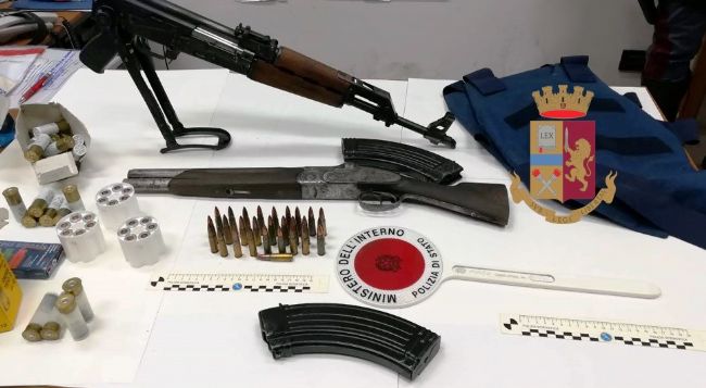 In particolare, in un casolare abbandonato di via Privati, sempre a Scanzano, gli agenti hanno rinvenuto un importante arsenale di armi: un kalashnikov e un fucile a canne mozze e numeroso munizionamento di diverso calibro, oltre ad un giubbotto antiproiettile il tutto sottoposto a sequestro e ora al vaglio della Polizia Scientifica.