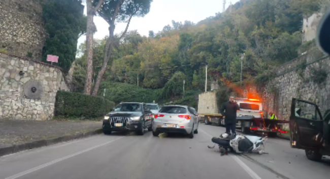 Un altro incidente si è verificato nel pomeriggio sulla strada Panoramica, nei pressi del castello medievale. Ad avere la peggio è stato uno scooter che, a seguito dell’impatto, ha strisciato sull’asfalto. Restano ancora da chiarire le dinamiche del sinistro e le condizioni dei conducenti. Sul posto è giunto un carro attrezzi per recuperare il veicolo a due ruote.