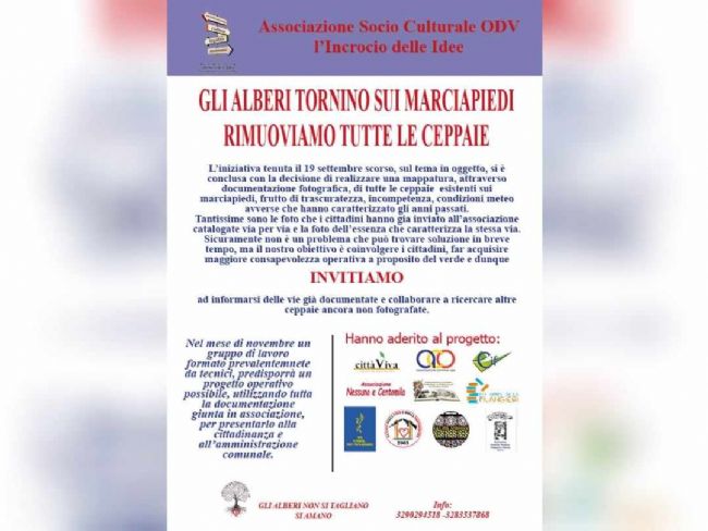 In questa seconda fase rinnoviamo l’invito a tutti i cittadini a continuare ad individuare le ceppaie per arricchire sempre più la documentazione fotografica di un disastro perpetrato nel tempo.