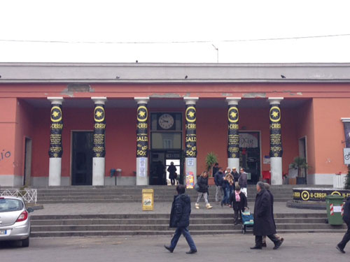 Il sig. Francesco Eresiarco accompagna con questo commento la foto riportata qui in basso, da lui stesso inviataci, in cui si immortala la facciata esterna della stazione della ferrovia dello Stato a Piazza Matteotti le cui colonne ed i giardinetti antistanti sono tappezzati con manifesti pubblicitari.