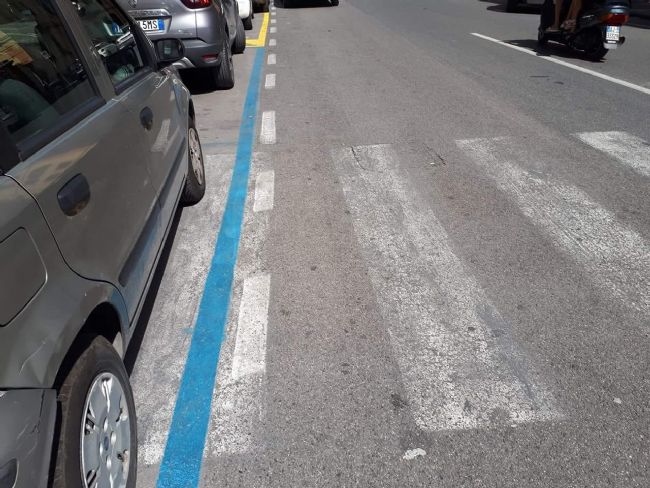 Strisce blu cancellano le strisce pedonali. Succede in Corso Alcide De Gasperi, a Castellammare, nei pressi di piazza Matteotti dove, dopo aver ridipinto le aree di sosta, è stato eliminato il percorso pedonale. Ed è così che i cittadini che proveranno ad attraversare la strada si ritroveranno di fronte un'auto parcheggiata comodamente e involontariamente nello stallo a pagamento. Un disagio non indifferente considerato che corso De Gasperi è molto frequentato soprattutto da pedoni che si recano in villa comunale.