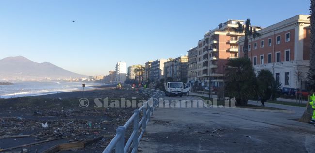 I principali sforzi sono concentrati in villa comunale. Qui, le mareggiate ed il vento, hanno portato molta sabbia sul lungomare. Molti gli alberelli abbattuti e rimasti a terra. Giardinetti devastati dalle raffiche di vento. Arenile ricoperto dai rifiuti portati lì dal mare. Questo lo scenario che da ieri si è presentato agli occhi degli stabiesi.