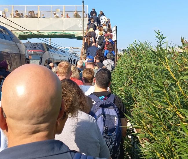 Il treno delle 13:36 da Napoli per Sorrento, causa avaria, giunto a Pioppaino è stato soppresso. Centinaia di persone sono state così costrette a scendere dal treno e dirigersi al binario n. 1 dove un altro convoglio ha proseguito la corsa verso Sorrento. Vagoni zeppi di persone, senza aria condizionata, asfissiati dal caldo e dal sudore. «Più che treni viaggiatori si tratta di vagoni per bestiami» ha commentato un cittadino. «La solita vergogna vesuviana – commenta un pendolare di Castellammare di Stabia – Per fortuna che io sono sceso subito dopo Pioppaino, ma i tanti turisti ammassati in quei vagoni erano atterriti di quanto gli stesse capitando. Un treno partito dal Napoli alle 13:36 e che doveva arrivare a Castellammare di Stabia alle 14.20 ha accumulato ben 50 minuti di ritardo. Una vergogna». In pratica, il viaggio è durato quasi il doppio per i malcapitati.