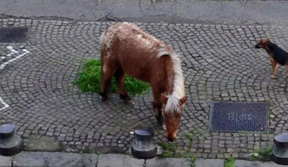 Una curiosa presenza scorazza per le strade della città in questi giorni sotto gli occhi attoniti dei passanti. Un pony marrone, infatti, si aggira indisturbato tra la villa comunale e il centro antico nutrendosi dell'erba che sbuca dalle aiuole lungo il percorso che va dal corso Garibaldi a via Bonito, prima di intrufolarsi in via Padiglione del Gesù. L'animale sta destando enorme curiosità tra i cittadini stabiesi, i quali si interrogano su chi possa essere il proprietario, temendo che il grazioso equino possa essersi smarrito e stia vagando in cerca di una meta. Le condizioni climatiche in questi giorni, infatti, sembrano tutt'altro che ideali per tenerlo lontano dalle stalle, ma finora l'ENPA (Ente Nazionale Protezione Animali) non è stato ancora allertato per tutelarne la sopravvivenza, segnale quest'ultimo della probabile esistenza di un proprietario finora rimasto ignoto. Nel frattempo, gli stabiesi non sembrano affatto turbati dalla presenza del pony, il quale adesso contende il ruolo di mascotte della città a Nerone, storico cane di razza meticcia che negli anni si è conquistato la simpatia e l'affetto di tutti, guadagnandosi anche il simbolico titolo di “sindaco” ad honorem di Castellammare.