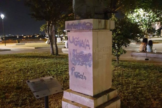 Ennesimo atto vandalico in villa comunale. Proprio a pochi passi dal punto in cui alcuni mesi fa le giostrine furono bersaglio di vandalli. A farne le spese stavolta è la statua di Giuseppe Bonito, noto pittore stabiese, il cui busto venne eretto nel 1960: ai piedi della statua sono state impresse con lo spray alcune scritte. Non si sa in quale occasione sia stato compiuto l'atto vandalico, nè se qualcuno abbia notato qualcosa, ma è pur sempre prova che sul posto occorre sfruttare di più le telecamere di sicurezza installate per prevenire questi episodi.