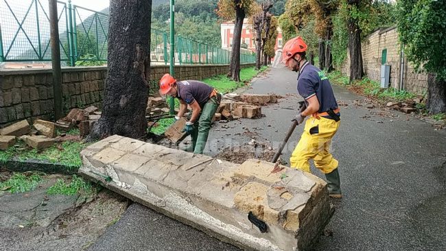 Nella zona collinare, in particolare, i volontari della protezione civile ROSS sono dovuti intervenire nei pressi della Reggia di Quisisana per il cedimento di un muro di contenimento nel viale degli ippocastano. Circa 3 metri di muro hanno ceduto, bloccando il passaggio delle auto. I volontari hanno così dovuto rimuovere i massi dalla strada oltre a mettere in sicurezza la zona.