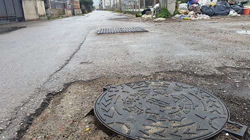 Tombini delle fognature rialzati come se fossero delle piccole torrette.