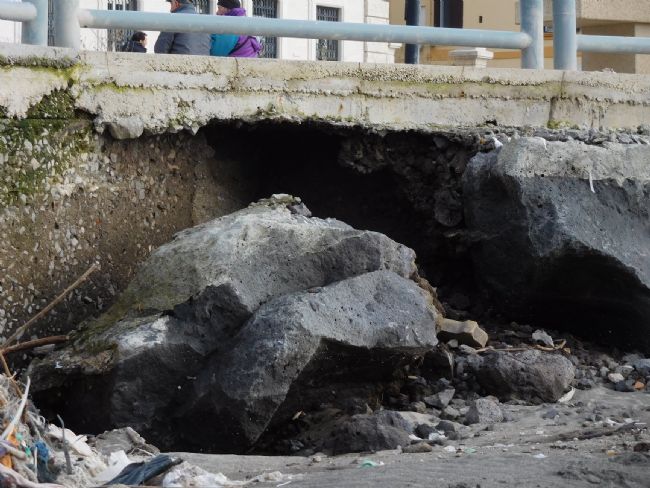 La forze del mare è distruttiva. E la villa comunale, inaugurata solamente un anno fa, lo sa bene. A causa delle violente mareggiate della scorsa settimana, la massicciata, che sostiene il prolungamento del lungomare sull'arenile, è stata danneggiata. Alcuni massi, nei pressi dell'Hotel Stabia, si sono staccati dagli altri tanto che è venuto a mancare in alcuni punti il sostegno delle pietre. Durante la realizzazione della nuova villa comunale, per prevenire eventuali danni, la pavimentazione è stata protetta e rafforzata con del ferro ma sicuramente non è stata progettata per non avere un sostegno.