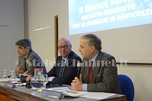 Il Commissario straordinario dell'Ente d'Ambito Sarnese Vesuviano, Carlo Sarro, ed il presidente di GORI, Amedeo Laboccetta, hanno presentato ai giornalisti ed ai sindaci dei Comuni dell'ATO 3 Campania gli obiettivi raggiunti con il BONUS IDRICO 2014 e le novità per l'anno 2015 di questa importante misura, volta ad aiutare concretamente le famiglie che vivono una situazione di disagio economico.