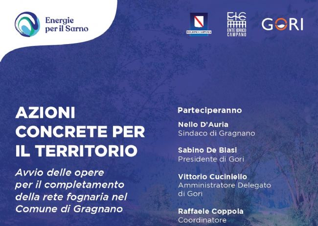 “In sinergia con la Regione Campania e il governatore Vincenzo De Luca, grazie al lavoro messo in campo dall’Ente Idrico Campano guidato da Luca Mascolo e al gestore del distretto Gori, - prosegue il sindaco D’Auria - porteremo finalmente a compimento un lavoro importante di programmazione, che metteremo a frutto con un intervento strategico per Gragnano e per l’intero comprensorio. Stiamo lavorando per dare impulso alla crescita di tutto il territorio, attraverso azioni mirate che vanno nella direzione dello sviluppo nel segno della sinergia e della condivisione di intenti per il bene dei cittadini”.