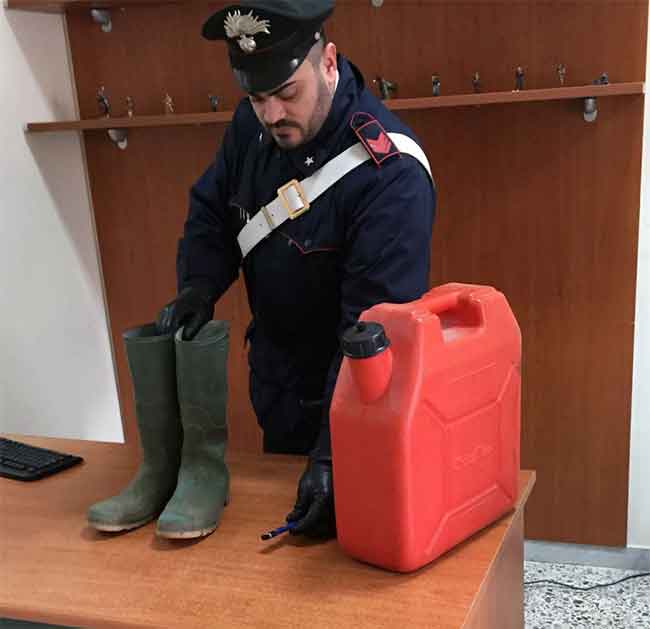 Raccolte le prime informazioni vanno diretti a fare una perquisizione a casa di un 44enne del luogo, dove trovano una tanica da 20 litri contenente residui di benzina, un accendino e un paio stivali in gomma con le suole ancora intrise di benzina. Acquisite informazioni sugli attriti con i vicini proprietari delle auto e rinvenuto il materiale usato per appiccare le fiamme è scattata immediatamente la denuncia a piede libero per danneggiamento doloso a seguito di incendio.