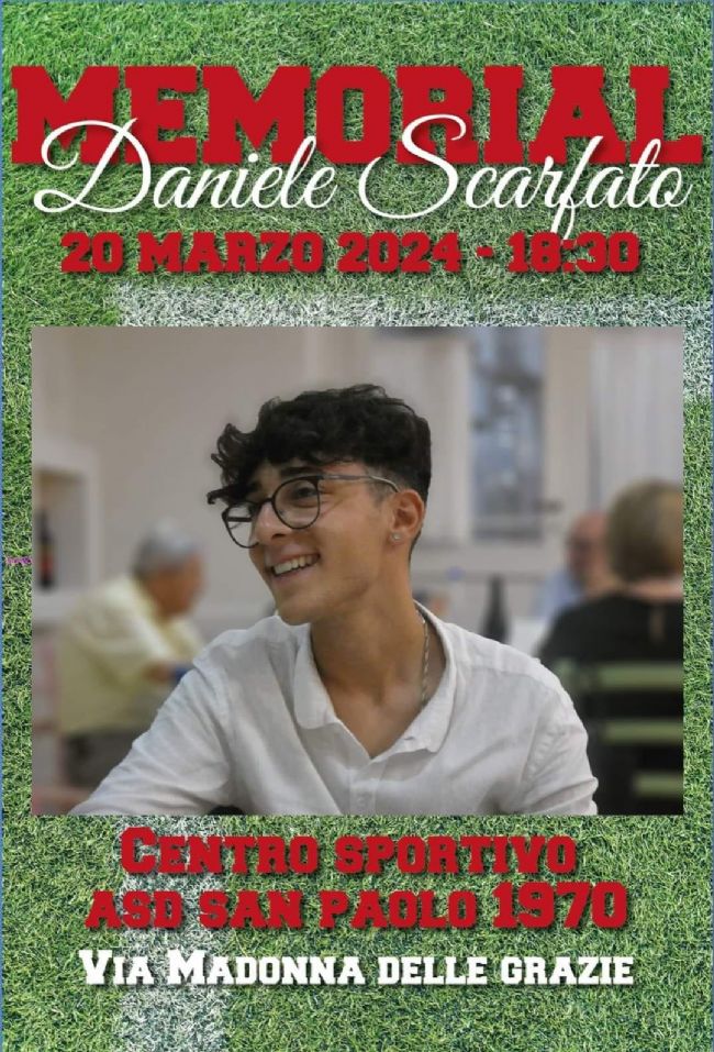 L’ASD San Paolo 1970 ricorda Daniele Scarfato. Oggi pomeriggio, alle ore 18.30, il Presidente Salvatore D’Antuono e il responsabile Giovanni Malafronte hanno organizzato il “Memorial Daniele Scarfato”. Presso il Centro Sportivo sito in via Madonna delle Grazie, Gragnano, alla presenza della famiglia e dei tanti giovani atleti della società, si terrà una suggestiva manifestazione nel ricordo del giovanissimo atleta Daniele, scomparso prematuramente in un tragico incidente stradale lo scorso ottobre. «L’ASD San Paolo 1970 vuole ricordare un figlio di tutti noi – spiega il dirigente Giovanni Malafronte –, sarà un momento intenso che vivremo tutti noi assieme alla famiglia e ai nostri ragazzi. Ricorderemo sempre Daniele, è nei nostri cuori». L’ennesima dimostrazione di come amore, passione e fantasia incarnino i valori della scuola calcio e non siano un semplice slogan. Complimenti a tutti per la suggestiva ed encomiabile iniziativa.