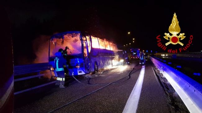 Le fiamme hanno invaso l'autobus mentre era in viaggio. In pochi minuti il fumo ha attraversato la vettura seminando il panico fra i presenti. Attimi di terrore domenica sera sull'autostrada Napoli - Canosa quando un gruppo di fedeli, di ritorno da San Giovanni Rotondo e diretti a Gragnano, si è ritrovato coinvolto in un maxi incendio causato, probabilmente, da un guasto al motore. «L'autobus era pieno di anziani, donne incinte e bambini - spiega un passeggero -. Sono stati attimi di paura che hanno paralizzato tutti, anche il personale a bordo. Alcuni dei presenti hanno rotto i finestrini facendo uscire il fumo che ormai aveva invaso i sedili- I vigili del fuoco sono arrivati in un secondo momento e sono riusciti a spegnere le fiamme. Se oggi siamo vivi, è grazie al coraggio di molti fedeli che si sono attivati subito per far uscire i passeggeri». «Siamo miracolati - continua -. La paura è stata tanta, le fiamme avevano ormai attraversato l'autobus. A distanza di giorni siamo ancora tutti sotto shock».