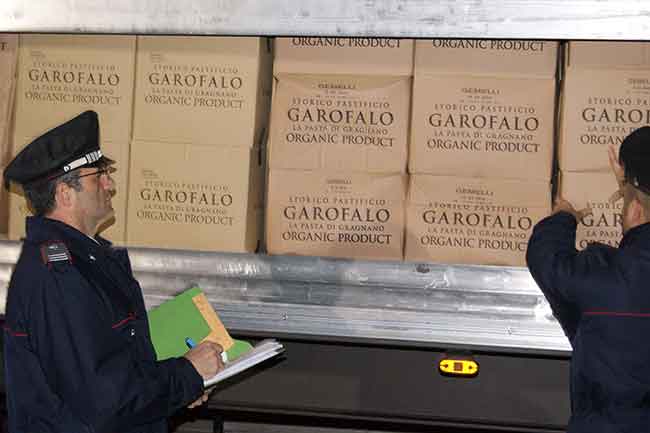 Nel deposito sono stati rinvenuti e sequestrati 174 quintali di pasta “Garofalo”, 84 quintali di pasta “De Matteis”, 4.200 bottiglie (da 0,5 litri l’una) di aceto balsamico “Colavita”.