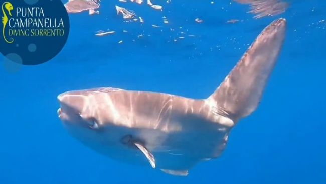 Spettacolare avvistamento nell'Area Marina Protetta Punta Campanella: un grosso esemplare di Mola mola visto da vicino sott'acqua.