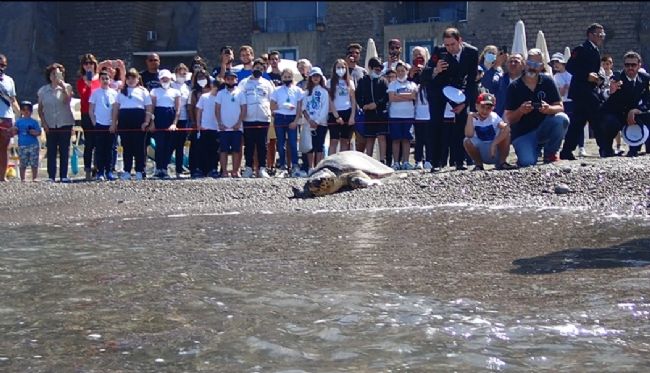 È tornata in mare questa mattina, dalla spiaggia di Meta di Sorrento. La tartaruga recuperata il mese scorso in fin di vita dallo staff dell'Area Marina Protetta di Punta Campanella è ora di nuovo libera di nuotare nel Mediterraneo. È un grosso maschio, ribattezzato Nicolantonio, molto importante per la conservazione della specie perché in età riproduttiva. Il 4 Aprile, un pescatore di Salerno, Antonio De Mai, se l'era ritrovato nella rete da pesca e aveva contattato lo staff di Punta Campanella, da anni impegnato nel recupero e nel salvataggio delle Caretta Caretta, soprattutto nel golfo di Salerno. Gli esperti dell'Area Marina Protetta hanno subito accertato la gravità delle condizioni della tartaruga: era immobile, in uno stato apparentemente comatoso, non reagiva ad alcuno stimolo. È stato subito disposto il trasferimento presso il Turtle Point della Stazione Zoologica A.Dohrn. Qui gli accertamenti hanno confermato la prima ipotesi: embolia. Una malattia da decompressione, spesso associata alla cattura accidentale in reti da pesca.