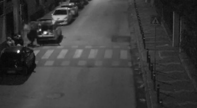 Panda fermata ad un posto di blocco. Uomo e donna in manette.