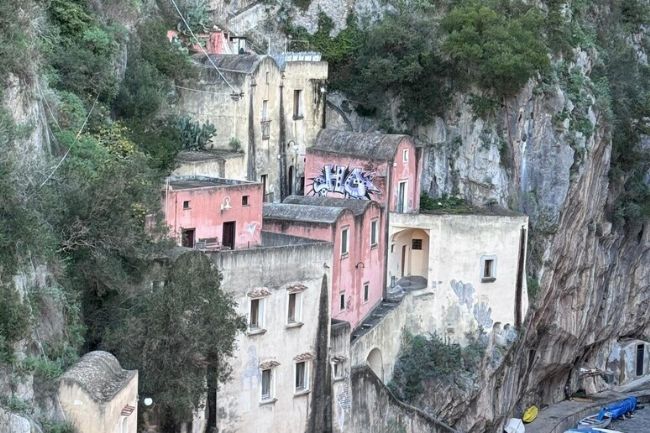 Un murale è apparso a sfregiare il grappolo di case dove si trova anche quella in cui vissero Anna Magnani e Roberto Rossellini, al fiordo di Furore, in Costiera amalfitana, un'area paesaggisticamente vincolata e patrimonio Unesco.