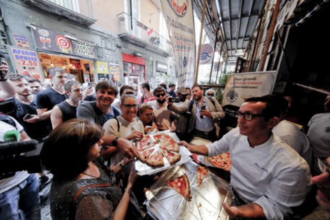 Bagno di folla, alla storica pizzeria Sorbillo ai Tribunali, per la risposta dei pizzaioli napoletani a quella che definiscono la "provocazione" di Flavio Briatore: "dice che se la pizza costa poco non è buona? Ecco, noi la facciamo così e gli ingredienti sono questi: assaggiatela e ditemi com'è", lancia la sfida Gino Sorbillo, attorniato da giornalisti, fotografi e le solite centinaia di persone che ogni giorno fanno la fila davanti al suo locale nel centro storico di Napoli. Per i quali, oggi, c'è una sorpresa: pizza gratis e prezzi ulteriormente scontati per chi, dopo la kermesse, troverà un tavolo all'interno.