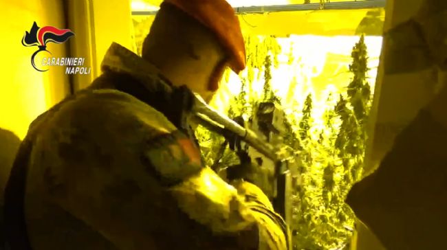 E’ lì che i carabinieri scovano 3 serre artificiali al cui interno erano in coltivazione 453 piante di cannabis indica di 150 centimetri l’una. 49 sono già in fase di essiccazione, 800 i grammi di “erba” già pronti al confezionamento.