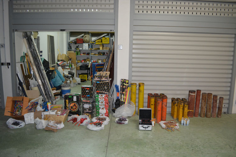 Nel corso di una perquisizione avvenuta presso un suo box auto in Corso Italia a Piano di Sorrento, sono stati rinvenuti 29 mortai in plastica e ferro, torte e fontane pirotecnice, numerosissimi shots di varie marche , 10 cariche per mortaio, vari “botti”, numerosi bengala di varie forme e colori, una valigetta contenente una centralina completa di telecomando e alimentatore, detonatori, ricevitori e telecomandi vari per la gestione dei giochi pirotecnici.