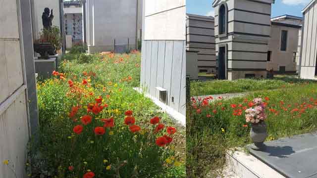 «Lo sai che i papaveri sono alti, alti, alti» così inizia l’orecchiabile ritornello della famosa canzone di Nilla Pizzi «Papaveri e papere». Le parole sembrano assai appropriate immaginando di voler accompagnare, con una colonna sonora, lo scorrere in sequenza delle immagini che provengono dalla parte cosiddetta ‘nuova’ del cimitero cittadino. L’erba alta la fa da padrona. Bellissime distese di papaveri rossi che circondano le tombe e le cappelle private diventano il simbolo, inequivocabilmente, della non-cura delle aree verdi del luogo santo (in foto). Uno stato d’abbandono che, per certi versi, entra in contraddizione con la recente disposizione comunale che, dal 15 maggio e fino al 15 settembre prossimo, vieta ai visitatori di deporre fiori freschi, così da impedire che possano marcire a causa della calura estiva e generare di conseguenza cattivi odori. Una misura volta anche per prevenire il proliferare di insetti, su tutti le zanzare, che proprio nelle acque stagnati di fioriere e sottovasi trovano il loro habitat naturale. «Ancora una settimana di tempo e poi non si potranno più portare fiori freschi fino a alla metà di settembre. Bene, io certamente rispetterò il divieto. Però spero che si provveda anche a far scomparire queste erbacce dalle quali spuntano topi e una grande varietà d’insetti». Questo il commento del signor Mario in visita ai suoi defunti nel cimitero nuovo. Il camposanto è ritornato sotto il controllo del Comune di Pompei con l’attuale squadra di governo. In precedenza la gestione dei servizi cimiteriali era affidata alla società privata Mirca. Il passaggio di consegne è avvenuto ad ottobre 2014. A distanza di tanti mesi c’è chi, oggi come ad allora, rimpiange la gestione privata e chi, invece, sostiene ed incoraggia quella comunale. «La parte nuova del cimitero è nel più totale abbandono – commentano i Democratici Riformisti aggiungendo – della costruzione dei nuovi loculi non se ne parla ancora. Se si chiedono spiegazioni in merito allo stato d’incuria del camposanto, la risposta più ricorrente è che non c'è personale. Ma non può essere questa una giustificazione. Vietati i fiori freschi da metà maggio? Bene, allora venga ripulita la zona indicata dalle erbacce che ormai hanno sovrastato anche le vie di accesso ai loculi. Nella stessa zona inoltre – conclude il gruppo di minoranza consiliare – l'aria resta irrespirabile per il solito problema della discarica alle spalle del cimitero».