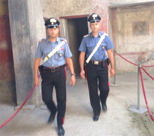 Quattro turisti francesi di origine maghrebina sono stati denunciati dai carabinieri con l'accusa di furto aggravato negli scavi di Pompei. I quattro sono stati sorpresi dalla vigilanza degli Scavi nelle terme del foro con quattro frammenti di malta non affrescati nello zaino. I frammenti di dimensioni tra i due e i tre centimetri, erano stati raccolti da terra e non staccati dalle pareti. Il materiale è stato recuperato e riconsegnato al laboratorio restauri della Sovrintendenza.