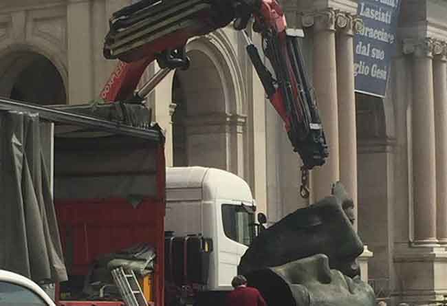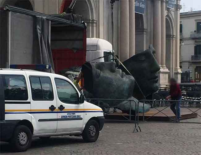 Spostato da piazza Bartolo Longo “Hermanos” il meraviglioso bronzo di Igor Mitoraj. I fatti confermano le voci che si sono inseguite per settimane e che riferivano che l’opera sarebbe stata spostata con l’approssimarsi della supplica alla Beata Vergine del Rosario dell’8 maggio prossimo. Vale la pena ricordare che in data 5 aprile 2016, il sindaco Ferdinando Uliano aveva inoltrato al dirigente del VI settore comunale Michele Fiorenza, al dirigente del IV settore comunale Gaetano Petrocelli e al dirigente del II settore comunale Raimondo Sorrentino la nota del vice questore aggiunto Angelo Raffaele Lamanna nella quale si sollecitava il Comune di Pompei ad individuare un’area diversa da piazza Bartolo Longo dove posizionare il bronzo, per ragioni di sicurezza. L’amministrazione comunale, in queste settimane, ha smentito strenuamente le voci che riferivano di una possibile rimozione della statua. I fatti e le foto però raccontano altro. Stando a quanto riferiscono i bene informati Luca Pizzi dell’atelier Mitoraj sarebbe su tutte le furie. Lo storico collaboratore dell’artista polacco non avrebbe gradito la rimozione del bronzo per il quale dovrà essere ora trovata un’altra collocazione. Tra le ipotesi probabili ci sarebbe una sua possibile installazione nei pressi del municipio. Ma si vocifera anche che “Hermanos” potrebbe unirsi alle altre opere di Mitoraj esposte negli scavi archeologici di Pompei.
