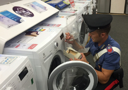 Avevano escogitato un metodo per passare indenni tra i rilevatori dell'antitaccheggio: all'interno del punto vendita preso di mira spacchettavano e privavano del sistema antitaccheggio i materiali di interesse (perlopiù telefonini di ultima generazione) facendo sparire involucri e sistemi di protezione infilandoli nelle lavatrici in esposizione e poi passavano dalle casse tenendo in tasca dei telefonini ormai "disarmati". L'escamotage, però, ha avuto vita breve e i carabinieri della stazione di Pompei hanno tratto in arresto per tentato furto aggravato Irakli Mumladze, 23enne della Georgia, domiciliato a Napoli e già noto alle ffoo, Volodymyr Gutaiev, 44enne della Georgia, domiciliato a Napoli e già noto alle ffoo, Zviadi Pargalava, 25enne della Georgia, domiciliato a Napoli e già noto alle ffoo, Marianna Adamchuk, 37 enne ucraina domiciliata a Napoli. I militari dell'arma sono intervenuti nel punto vendita Media World all'interno del centro commerciale La Cartiera a seguito di segnalazione di un addetto alla sicurezza, accertando che i predetti avevano, appunto, rimosso i dispositivi antitaccheggio e gli imballaggi di alcuni telefonini buttandoli nei cestelli delle lavatrici in esposizione e poi avevano tentato di uscire con i telefoni, venendo comunque individuati a vista e bloccati prima di uscire. Il materiale è stato rinvenuto e restituito all'avente diritto. Gli arrestati sono in attesa di rito direttissimo.