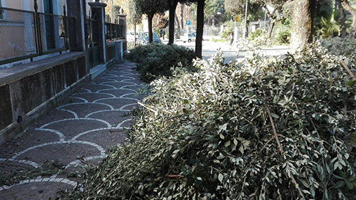 Caos in via Plinio. La ditta privata che ha potato gli alberi per conto del comune, ha lasciato in strada rami e foglie. Ci sono cumuli che impediscono il passaggio ai pedoni, che sono costretti a camminare sulla carreggiata. Le foto stanno facendo il giro sul web. I disagi vanno avanti dallo scorso 4 dicembre 2015. In altre parole la ditta privata gli alberi li ha sistemati ma, di portare via foglie e rami, almeno per ora, non ne vuole proprio sapere. La situazione è la stessa su entrambi i lati di via Plinio. Esacerbati residenti e commercianti della zona che sperano che al più presto si provveda a ripulire, magari dietro solleciti dell’ufficio tecnico comunale.