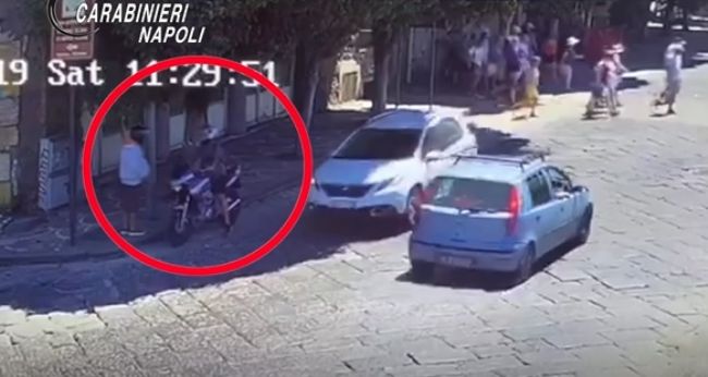 La misura cautelare riassume gli esiti dell’ indagine coordinata dalla Procura della Repubblica presso il Tribunale di Torre Annunziata. Le immediate indagini, avviate subito dopo la denuncia della vittima, facevano emergere gravi indizi di colpevolezza nei riguardi dell’indagato, che aveva come attività principale la realizzazione di rapine di orologi di ingente valore. Da una meticolosa attività di analisi, dalla visione dei filmati, e dall’ incrocio di dati acquisiti mediante lo studio dei tabulati telefonici, posti a confronto con file multimediali contenuti in un cellulare posto sotto sequestro nonché dalle numerose individuazioni fotografiche e confronti di particolari antropo-somatici eseguiti dal Reparto Speciale “RACIS” carabinieri di Roma, è stato accertato che il malvivente dopo aver individuato la vittima in giro per le strade del capoluogo partenopeo, e diretto in Pompei a bordo di un taxi, aveva iniziato unitamente al suo sodale il pedinamento – organizzato in maniera minuziosa ed eseguito per non destare sospetti a bordo di due distinte motociclette di grossa cilindrata con volto travisato da caschi . Giunto, il taxi in Pompei, approfittando di una distrazione della vittima, che era, unitamente al proprio nucleo familiare, mantenendo tra l’altro, per mano i suoi figli minori, il R.F. scendeva dalla propria motocicletta, raggiungeva l'uomo alle spalle e con violenza gli strappava dal polso l’orologio, marca Rolex 5508 antico del valore di circa 25.000 euro. A causa della violenza subita e nel vano tentativo di inseguire ed afferrare i malviventi, il rapinato rovinava in terra riportando la frattura di un dito del piede e diverse escoriazioni.