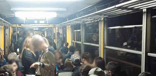 Il macchinista, interpellato dai viaggiatori, non sa cosa dire mentre gli altoparlanti restano muti. La gente si lamenta: chi deve raggiungere il posto di lavoro, chi deve andare a prendere i figlia scuola. Ma non solo. Senza poter scendere al treno e senza un bagno a disposizione, in molti cominiano a spazientirsi e ad accusare malori.