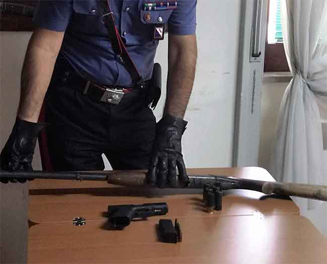 Nel locale rinvenute anche una pistola “glock” con matricola abrasa e carica e una doppietta rubata a Sarno nel 2006 completa di cartucce.