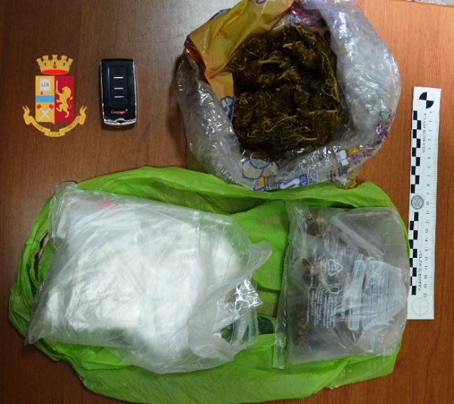 Giovedì pomeriggio gli agenti del commissariato di Pompei, durante un servizio di contrasto allo spaccio di sostanze stupefacenti, hanno notato in via Traversa Gesuiti un uomo che, dopo aver consegnato dalla finestra della sua abitazione un involucro ad una persona a bordo di uno scooter in cambio di denaro, è uscito dall'edificio insieme ad un giovane, ognuno con una busta tra le mani.
