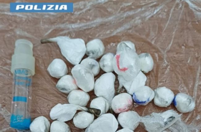Ieri mattina gli agenti del Commissariato di Pompei, durante i servizi all’uopo predisposti, stavano per procedere al controllo di un uomo presso la sua abitazione, quando, quest’ultimo, avendo udito la presenza dei poliziotti alla porta, ha lanciato dalla finestra del balcone un involucro nel tentativo di disfarsene ma, altri operatori, posti in servizio di osservazione, lo hanno immediatamente recuperato rinvenendo al suo interno 31 dosi di cocaina del peso complessivo di circa 18 grammi. Gli operatori, all’interno dell’appartamento, con il supporto dell’Unità Cinofila, hanno, altresì, rinvenuto 3300 euro in banconote di vario taglio ed una sigaretta artigianale del tipo “spinello”.
