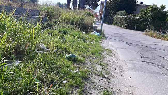 Nonostante le ripetute lamentele dei residenti, lungo la strada vengono ancora abbandonati sacchetti dell’immondizia.