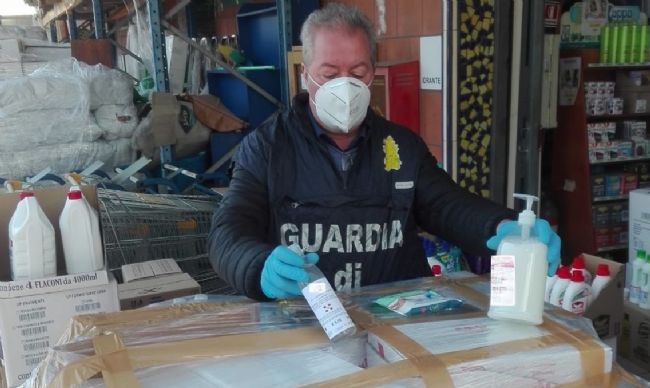 La Compagnia della Guardia di Finanza di Torre Annunziata ha sequestrato più di 5.300 flaconi di gel igienizzante e oltre 1.500 blister di salviettine per mani con simboli ingannevoli e tali da indurre in errore il consumatore in merito alle loro proprietà sanitarie.