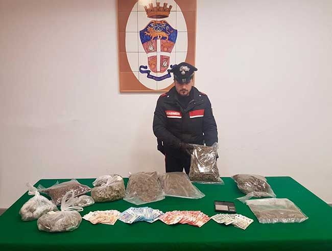 Dopo il controllo del minore, i militari hanno perquisito un’abitazione di Pompei sorprendendovi un altro 17enne di Scafati e 4 ragazzi a confezionare in dosi 3 chili di marijuana. Erano seduti su dei divanetti e sopra ad un tavolino avevano a portata di mano un bilancino e svariate bustine; in un cassetto, inoltre, i militari hanno rinvenuto 3.400 euro in contante.
