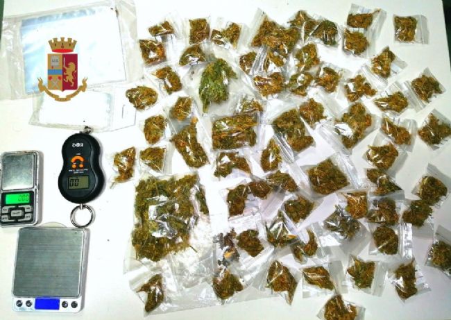 I poliziotti, intervenuti in Via Italia nel comune di Sant’Agnello, hanno controllato un box in fitto ad una donna originaria di Vico Equense. All'interno del garage i poliziotti hanno rinvenuto e sequestrato tre bilancini di precisione e sessantatré bustine contenenti marijuana, oltre ad un libro con annotazioni delle vendite.