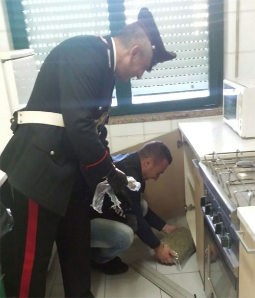 I due sono stati trovati in possesso nella loro abitazione di 1,125 chilogrammi di marijuana che tenevano occultata nel basamento di un mobile della cucina.