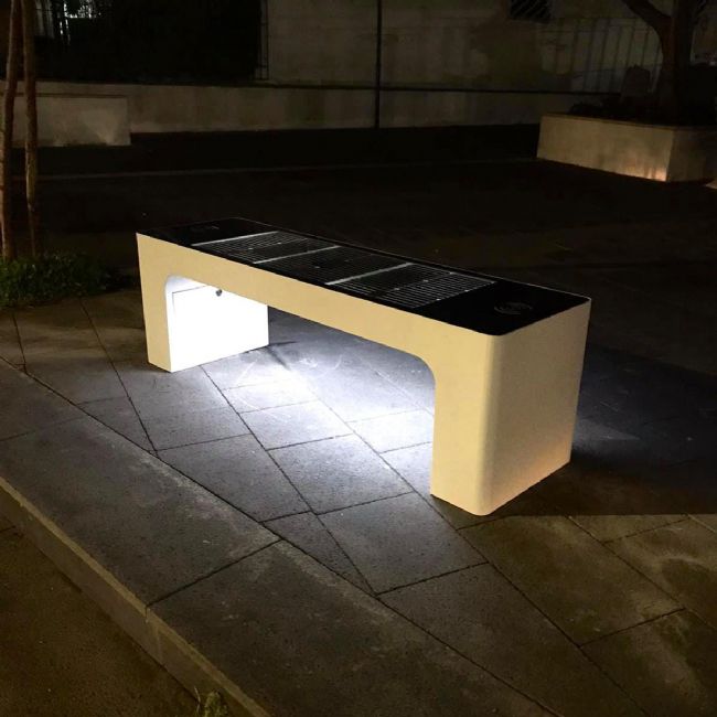 Sarà possibile accomodarsi su una panca interconnessa con l’ambiente che la circonda, dal design moderno e realizzata con pannelli solari integrati in grado di trattenere la luce solare o artificiale e rilasciarla nelle ore notturne. Grazie a questo sistema, la stessa panchina intelligente diviene retroilluminata al calar del sole senza alcuno spreco di energia!