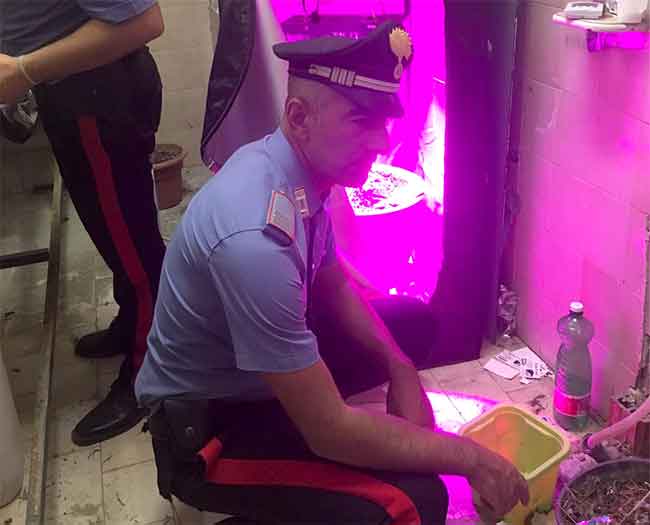 Durante controlli a casa del figlio Vincenzo, 34enne, anch’egli del luogo e già noto alle forze dell'ordine, i militari hanno invece scoperto che era dedito alla produzione, coltivazione e detenzione di stupefacente. Nel suo domicilio sono stati infatti trovati 817 grammi di marijuana e un bilancino di precisione ma anche una serra casalinga artigianale con tanto di impianto di illuminazione e aereazione e una pianta di cannabis indica di altezza pari a 2 metri e peso di circa 1 kg.
